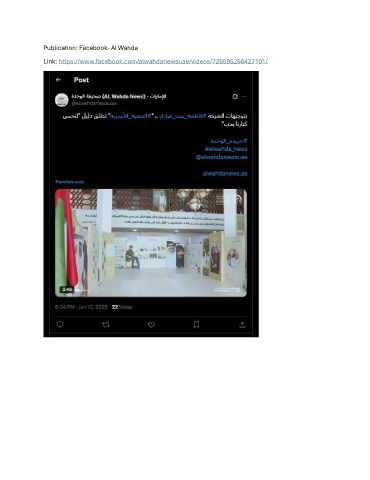 Publication: Facebook- Al Wahda Link: https://www.facebook.com/alwahdanewsuae/videos/726595266427101/