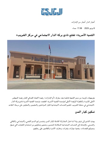 «ﺐﻳﻮﺸﻟا ﺰﻛﺮﻣ ﻓ ﻋﺎﻤﺘﺟﻻا راﺪﻟا ﺔﻛﺮﺑ يدﺎﻧ ﺢﺘﺘﻔﺗ «ﺔﻳﺮﺳﻷا ﺔﻴﻤﻨﺘﻟا