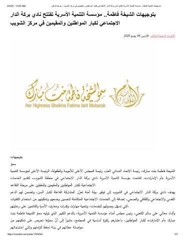 6/9/25, 10:05 AM نطوﻟا ةدﯾرﺟ › بﯾوﺷﻟا زﻛرﻣ ﻲﻓ نﯾﻣﯾﻘﻣﻟاو نﯾﻧطاوﻣﻟا رﺎﺑﻛﻟ ﻲﻋﺎﻣﺗﺟﻻا رادﻟا ﺔﻛرﺑ يدﺎﻧ ﺢﺗﺗﻔﺗ ﺔﯾرﺳﻷا ﺔﯾﻣﻧﺗﻟا ﺔﺳﺳؤﻣ ..ﺔﻣطﺎﻓ ﺔﺧﯾﺷﻟا تﺎﮭﯾﺟوﺗﺑ