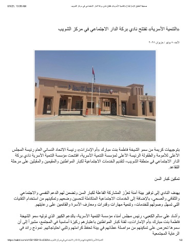 6/9/25, 10:08 AM بﯾوﺷﻟا زﻛرﻣ ﻲﻓ ﻲﻋﺎﻣﺗﺟﻻا رادﻟا ﺔﻛرﺑ يدﺎﻧ ﺢﺗﺗﻔﺗ «ﺔﯾرﺳﻷا ﺔﯾﻣﻧﺗﻟا» | ﺔﯾﺗارﺎﻣﻹا ﺞﯾﻠﺧﻟا ﺔﻔﯾﺣﺻ