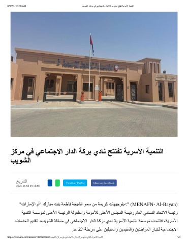 6/9/25, 10:08 AM بﯾوﺷﻟا زﻛرﻣ ﻲﻓ ﻲﻋﺎﻣﺗﺟﻻا رادﻟا ﺔﻛرﺑ يدﺎﻧ ﺢﺗﺗﻔﺗ ﺔﯾرﺳﻷا ﺔﯾﻣﻧﺗﻟا