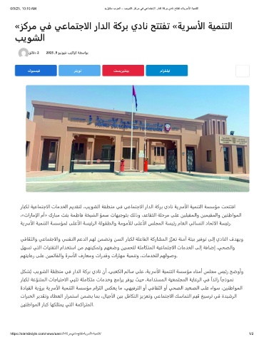 6/9/25, 10:10 AM «لﯾﺎﺗﺳ برﻌﻟا – بﯾوﺷﻟا زﻛرﻣ ﻲﻓ ﻲﻋﺎﻣﺗﺟﻻا رادﻟا ﺔﻛرﺑ يدﺎﻧ ﺢﺗﺗﻔﺗ «ﺔﯾرﺳﻷا ﺔﯾﻣﻧﺗﻟا