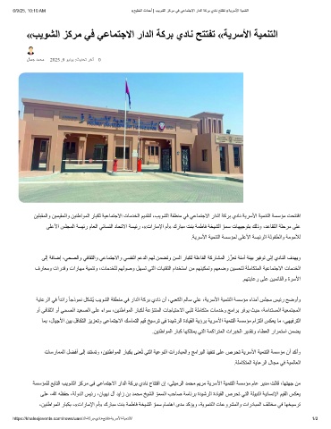 «ﺐﯾﻮﺸﻟا ﺰﻛﺮﻣ ﻲﻓ ﻲﻋﺎﻤﺘﺟﻻا راﺪﻟا ﺔﻛﺮﺑ يدﺎﻧ ﺢﺘﺘﻔﺗ «ﺔﯾﺮﺳﻷا ﺔﯿﻤﻨﺘﻟا