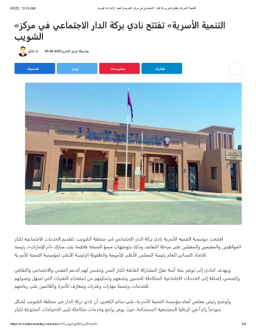 6/9/25, 10:10 AM «موﯾﻟا تارﺎﻣﻹا رﺎﺑﺧأ | بﯾوﺷﻟا زﻛرﻣ ﻲﻓ ﻲﻋﺎﻣﺗﺟﻻا رادﻟا ﺔﻛرﺑ يدﺎﻧ ﺢﺗﺗﻔﺗ «ﺔﯾرﺳﻷا ﺔﯾﻣﻧﺗﻟا