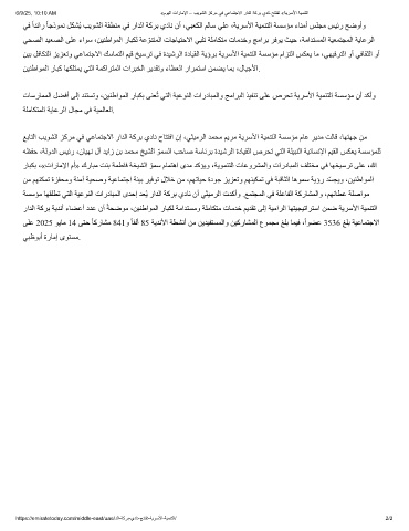 6/9/25, 10:10 AM «موﯾﻟا تارﺎﻣﻹا – بﯾوﺷﻟا زﻛرﻣ ﻲﻓ ﻲﻋﺎﻣﺗﺟﻻا رادﻟا ﺔﻛرﺑ يدﺎﻧ ﺢﺗﺗﻔﺗ «ﺔﯾرﺳﻷا ﺔﯾﻣﻧﺗﻟا