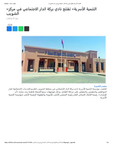 6/9/25, 10:11 AM «بﯾوﺷﻟا زﻛرﻣ ﻲﻓ ﻲﻋﺎﻣﺗﺟﻻا رادﻟا ﺔﻛرﺑ يدﺎﻧ ﺢﺗﺗﻔﺗ «ﺔﯾرﺳﻷا ﺔﯾﻣﻧﺗﻟا
