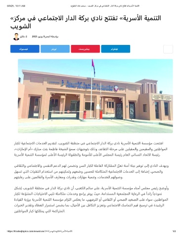 6/9/25, 10:11 AM «ﺞﯾﻠﺧﻟا تﺎﻋوﺿوﻣ - بﯾوﺷﻟا زﻛرﻣ ﻲﻓ ﻲﻋﺎﻣﺗﺟﻻا رادﻟا ﺔﻛرﺑ يدﺎﻧ ﺢﺗﺗﻔﺗ «ﺔﯾرﺳﻷا ﺔﯾﻣﻧﺗﻟا