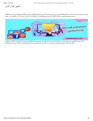 ﺔﻠﻣﺎﻜﺘﻤﻟا ﺔﯿﻋﺎﻤﺘﺟﻻا تﺎﻣﺪﺨﻟا ﻰﻟإ ﺔﻓﺎﺿﻹﺎﺑ ،ﻲﺤﺼﻟاو ﻲﻓﺎﻘﺜﻟاو ﻲﻋﺎﻤﺘﺟﻻاو ﻲﺴﻔﻨﻟا ﻢﻋﺪﻟا ﻢﮭﻟ ﻦﻤﻀﺗو ﻦﺴﻟا رﺎﺒﻜﻟ ﺔﻠﻋﺎﻔﻟا ﺔﻛرﺎﺸﻤﻟا ز ّ ﺰﻌﺗ ﺔﻨﻣآ ﺔﺌﯿﺑ ﺮﯿﻓﻮﺗ ﻰﻟإ يدﺎﻨﻟا فﺪﮭﯾ