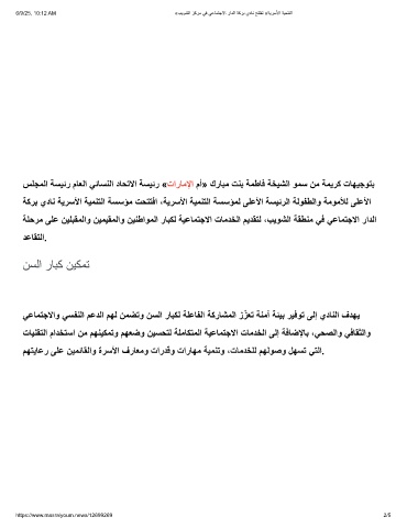 سﻠﺟﻣﻟا ﺔﺳﯾﺋر مﺎﻌﻟا ﻲﺋﺎﺳﻧﻟا دﺎﺣﺗﻻا ﺔﺳﯾﺋر «تارﺎﻣﻹا مأ» كرﺎﺑﻣ تﻧﺑ ﺔﻣطﺎﻓ ﺔﺧﯾﺷﻟا وﻣﺳ نﻣ ﺔﻣﯾرﻛ تﺎﮭﯾﺟوﺗﺑ