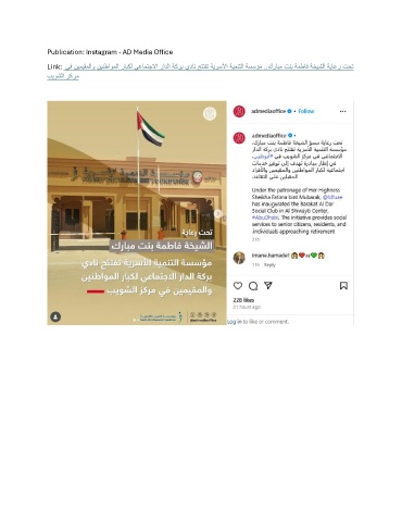 Publication: Instagram - AD Media Office Link: يف نيميقملاو نينطاوملا رابكل يعامتجلاا رادلا ةكرب يدان حتتفت ةيرسلأا ةيمنتلا ةسسؤم ..كرابم تنب ةمطاف ةخيشلا ةياعر تحت بيوشلا زكرم