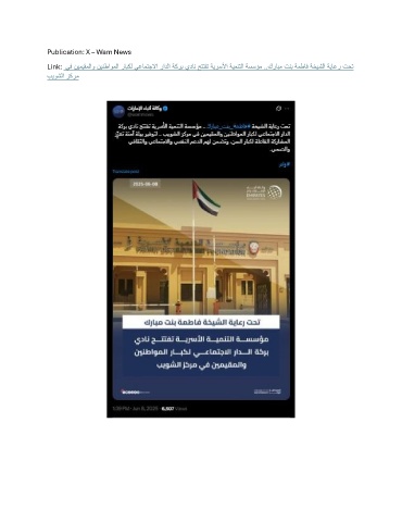 Publication: X – Wam News Link: يف نيميقملاو نينطاوملا رابكل يعامتجلاا رادلا ةكرب يدان حتتفت ةيرسلأا ةيمنتلا ةسسؤم ..كرابم تنب ةمطاف ةخيشلا ةياعر تحت بيوشلا زكرم