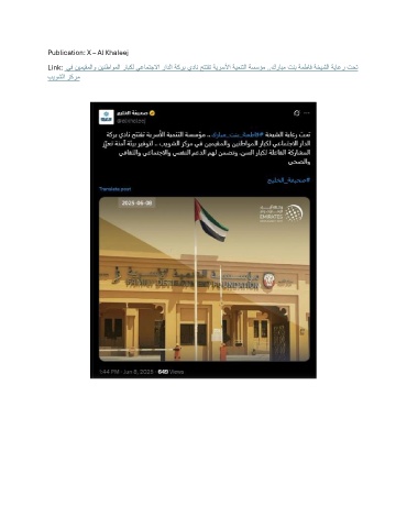 Publication: X – Al Khaleej Link: يف نيميقملاو نينطاوملا رابكل يعامتجلاا رادلا ةكرب يدان حتتفت ةيرسلأا ةيمنتلا ةسسؤم ..كرابم تنب ةمطاف ةخيشلا ةياعر تحت بيوشلا زكرم