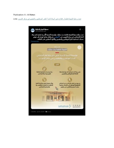 Publication: X – Al Watan Link: بيوشلا زكرم يف نيميقملاو نينطاوملا رابكل "رادلا ةكرب" يدان حاتتفا ..ةمطاف ةخيشلا ةياعر تحت