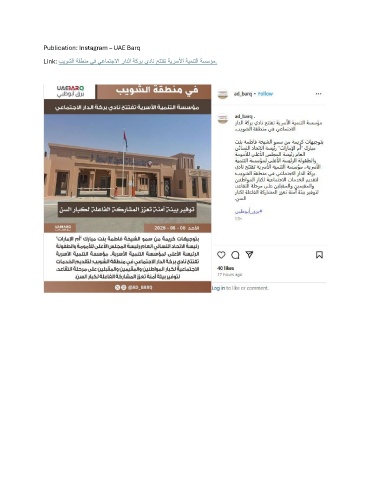 Publication: Instagram – UAE Barq Link: بيوشلا ةقطنم يف يعامتجلاا رادلا ةكرب يدان حتتفت ةيرسلأا ةيمنتلا ةسسؤم .