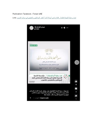 Publication: Facebook – Forsan UAE Link: بيوشلا زكرم يف نيميقملاو نينطاوملا رابكل "رادلا ةكرب" يدان حاتتفا ..ةمطاف ةخيشلا ةياعر تحت