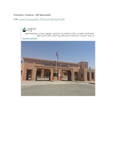 Publication: Facebook – UAE News Arabic Link: « بيوشلا زكرم يف يعامتجلاا رادلا ةكرب يدان حتتفت »ةيرسلأا ةيمنتلا