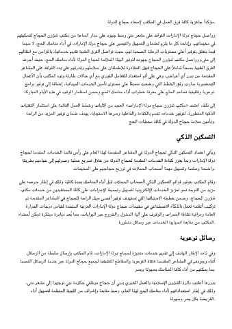 ءادأ ﻞﻴﻬﺴﺘﻟ ﺔﻤﻈﻨﻤﻟا ﺔﻨﺠﻠﻟا ﻦﻣ فاﺮﺷإو ﺔﻌﺑﺎﺘﻣ ﻂﺳو ،مﺎﻌﻟا اﺬﻬﻟ ﺞﺤﻟا ﻚﺳﺎﻨﻣ ءادﻷ ﻢﻬﺗاداﺪﻌﺘﺳا رﺎﻃإ ﻓ ﻚﻟذو