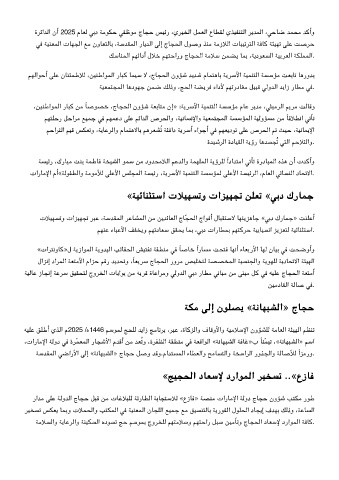 ﺔﻣﻼﺴﻟاو ﺔﻳﺎﻋﺮﻟاو ﺔﻨﻴﺴﻟا هدﻮﺴﺗ ﺞﺣ ﻢﺳﻮﻤﺑ جوﺮﺨﻠﻟ ﻢﻬﺘﻣﻼﺳو ﻢﻬﺘﺣار ﻞﺒﺳ ﻦﻴﻣﺄﺗو جﺎﺠﺤﻟا دﺎﻌﺳﻹ دراﻮﻤﻟا ﺔﻓﺎﻛ.