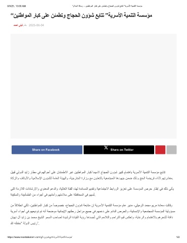 6/9/25, 10:00 AM “مﻼﺳﻟا ﺔﻟﺎﺳر – نﯾﻧطاوﻣﻟا رﺎﺑﻛ ﻰﻠﻋ نﺋﻣطﺗو جﺎﺟﺣﻟا نوؤﺷ ﻊﺑﺎﺗﺗ ”ﺔﯾرﺳﻷا ﺔﯾﻣﻧﺗﻟا ﺔﺳﺳؤﻣ