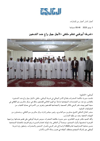 «ﻦﻴﺧﺪﺘﻟا ﺪﺿ عاو ﻞﻴﺟ ﻞﺟﻷ» ﻘﺘﻠﻣ ،ﺒﻇﻮﺑأ ﺔﻃﺮﺷ ﻓ ﺋﺎﻨﺠﻟا ﻦﻣﻷا عﺎﻄﻘﺑ تارﺪﺨﻤﻟا ﺔﺤﻓﺎﻣ ﺔﻳﺮﻳﺪﻣ ﺖﻤﻈﻧ