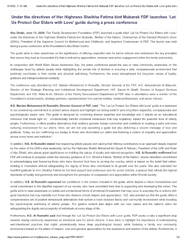 6/16/25, 11:31 AM Under the directives of Her Highness Sheikha Fatima bint Mubarak FDF launches ‘Let Us Protect Our Elders with Love' guide duri…
