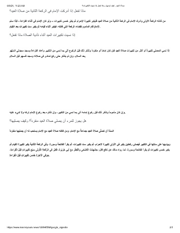 وْﮭﱠﺳﻟا ﻲﺗدﺟﺳ دﺟﺳو َةءارﻘﻟا دﺎﻋأو رﯾﺑﻛﺗﻟا نﻣ ﻲﺳﻧ ﺎﻣﺑ ﻰﺗأ عوﻛرﻟا لﺑﻗ كﻟذ رﻛذﺗو ًادرﻔﻧﻣ وأ ًﺎﻣﺎﻣإ نﺎﻛ نﺈﻓ دﯾﻌﻟا ةﻼﺻ تارﯾﺑﻛﺗ نﻣ رﺛﻛأ وأ ًةرﯾﺑﻛﺗ ﻲﻠﺻﻣﻟا ﻲﺳﻧ اذإ