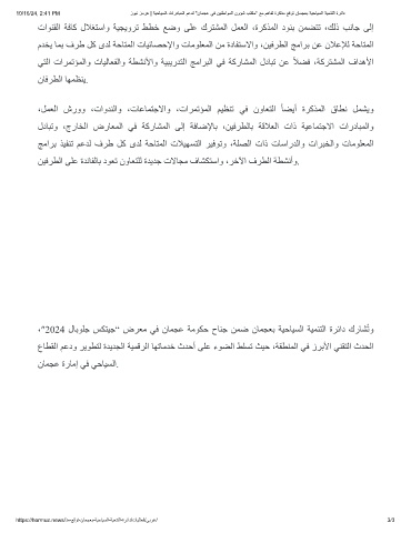 10/16/24, 2:41 PM زوﯾﻧ زﻣرھ | ﺔﯾﺣﺎﯾﺳﻟا تاردﺎﺑﻣﻟا مﻋدﻟ "نﺎﻣﺟﻋ ﻲﻓ نﯾﻧطاوﻣﻟا نوؤﺷ بﺗﻛﻣ" ﻊﻣ مھﺎﻔﺗ ةرﻛذﻣ ﻊﻗوﺗ نﺎﻣﺟﻌﺑ ﺔﯾﺣﺎﯾﺳﻟا ﺔﯾﻣﻧﺗﻟا ةرﺋاد