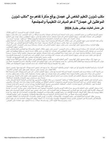 نوﺎﻌﺘﻟا ﺰﻳﺰﻌﺗ فﺪﮫﺑ ﻚﻟذو ،ﻦﯿﻨطاﻮﻤﻟا نوﺆﺷ ﺐﺘﻜﻣ ﻊﻣ ﻢھﺎﻔﺗ ةﺮﻛﺬﻣ ،نﺎﻤﺠﻋ ةرﺎﻣإ ﻲﻓ صﺎﺨﻟا ﻢﯿﻠﻌﺘﻟا نوﺆﺷ ﺐﺘﻜﻣ ﻊﻗو ؛نﺎﻤﺠﻋ ﻲﻓ ﻦﯿﻨطاﻮﻤﻟا