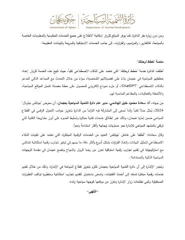 "لﺎﺒوﻠﺠ سﻛﺘﯿﺠ" ضرﻌﻤ ن أ ، نﺎمجﻌ � ﺔ�ﺤﺎ�سﻟا ﺔ�منتﻟا ةرﺌاد مﺎﻋ رﯿدﻤ ،ﻲمﺸﺎﻬﻟا ﻞیﻠﺨ دومحﻤ ةدﺎﻌﺴ دﻛأ ،ﻪﺘﻬﺠ نﻤ