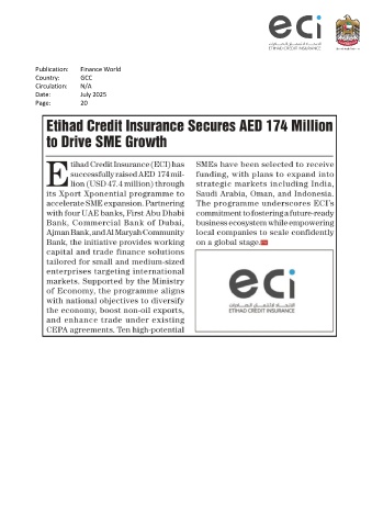 Publication: Finance World Country: GCC Circulation: N/A Date: July 2025 Page: 20