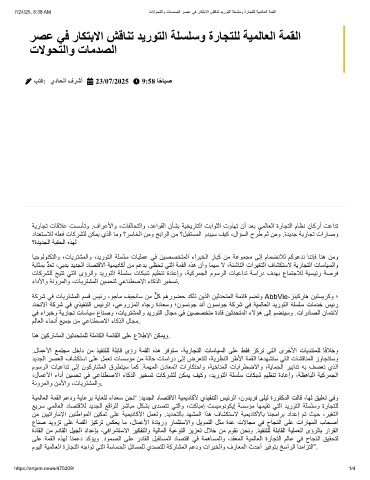 ﺐﺘﻛ: يدﺎﺤﻟا فﺮﺷأ 23/07/2025 9:58 ﺎًﺣﺎﺒﺻ