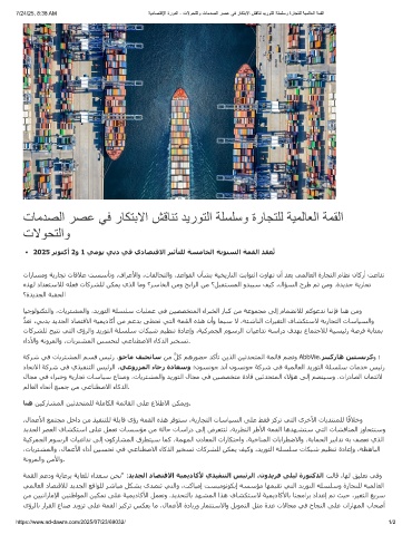 2025 ﺮﺑﻮﺘﻛأ 2و 1 ﻲﻣﻮﻳ ﻲﺑد ﻲﻓ يدﺎﺼﺘﻗﻻا ﺮﯿﺛﺄﺘﻠﻟ ﺔﺴﻣﺎﺨﻟا ﺔﻳﻮﻨﺴﻟا ﺔﻤﻘﻟا ﺪﻘﻌﺗ ُ