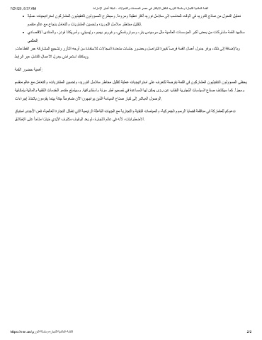 قﺎﺒﺘﺳا ىﺪﺟﻷا ﻦﻤﻓ ،ﺔﯿﻤﻟﺎﻌﻟا ةرﺎﺠﺘﻟا ﻞﻜﺸﺗ ﻲﺘﻟا ﺔﯿﺴﯿﺋﺮﻟا ﺔﻠﻋﺎﻔﻟا تﺎﮭﺠﻟا ﻊﻣ ﺔﯾرﺎﺠﺘﻟاو ﺔﯿﻨﻘﺘﻟا تﺎﺳﺎﯿﺴﻟاو ،ﺔﯿﻛﺮﻤﺠﻟا مﻮﺳﺮﻟا ﺎﯾﺎﻀﻗ ﺔﺸﻗﺎﻨﻣ ﻲﻓ ﺔﻛرﺎﺸﻤﻠﻟ ﻢﻛﻮﻋﺪﻧ