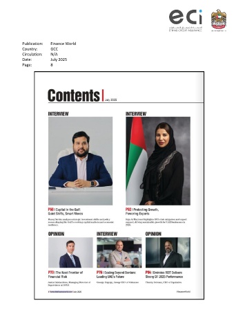 Publication: Finance World Country: GCC Circulation: N/A Date: July 2025 Page: 8