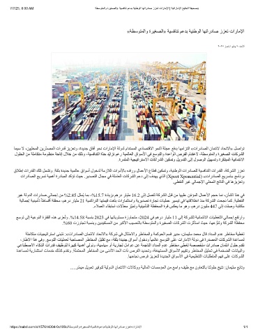 7/7/25, 8:00 AM ﺔطﺳوﺗﻣﻟاو ةرﯾﻐﺻﻟا» ﺔﯾﺳﻓﺎﻧﺗ مﻋدﺑ ﺔﯾﻧطوﻟا ﺎﮭﺗاردﺎﺻ ززﻌﺗ تارﺎﻣﻹا | ﺔﯾﺗارﺎﻣﻹا ﺞﯾﻠﺧﻟا ﺔﻔﯾﺣﺻ»