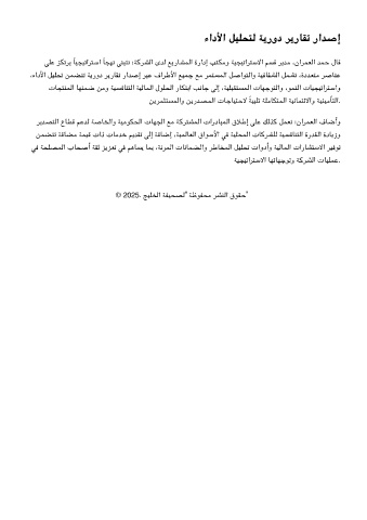 ،ءادﻷا ﻞﻴﻠﺤﺗ ﻦﻤﻀﺘﺗ ﺔﻳرود ﺮﻳرﺎﻘﺗ راﺪﺻإ ﺮﺒﻋ فاﺮﻃﻷا ﻊﻴﻤﺟ ﻊﻣ ﺮﻤﺘﺴﻤﻟا ﻞﺻاﻮﺘﻟاو ﺔﻴﻓﺎﻔﺸﻟا ﻞﻤﺸﺗ ،ةدﺪﻌﺘﻣ ﺮﺻﺎﻨﻋ