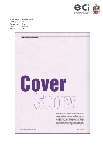 Publication: Finance World Country: GCC Circulation: N/A Date: July 2025 Page: 26