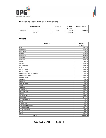 Value of Ad Spend for Arabic Publications