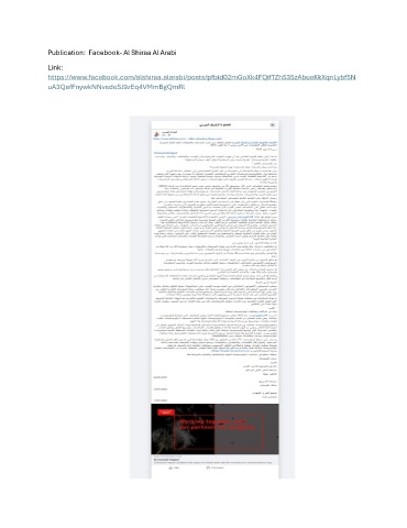 Publication: Facebook- Al Shiraa Al Arabi Link: https://www.facebook.com/alshiraa.alarabi/posts/pfbid02mGoXk4FQifTZh535zAbueKkXqnLybf5N uA3QafFnywkNNvedeSJ9zEq4VMmBgQmRl
