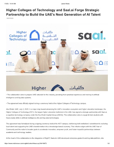 Higher Colleges of Technology (HCT), the largest higher education institution in the UAE, has signed a strategic partnership with Saal.ai,