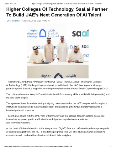 7/3/25, 10:57 AM Higher Colleges Of Technology, Saal.ai Partner To Build UAE’s Next Generation Of AI Talent - UrduPoint