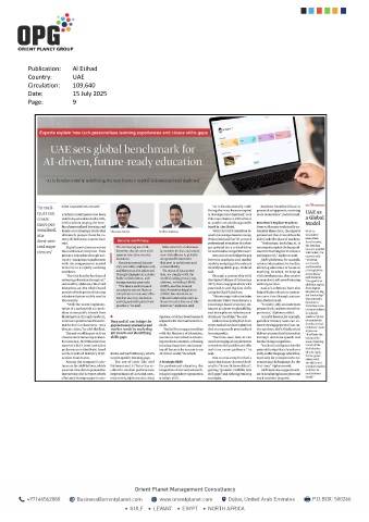 Publication: Al Etihad Country: UAE Circulation: 109,640 Date: 15 July 2025 Page: 9