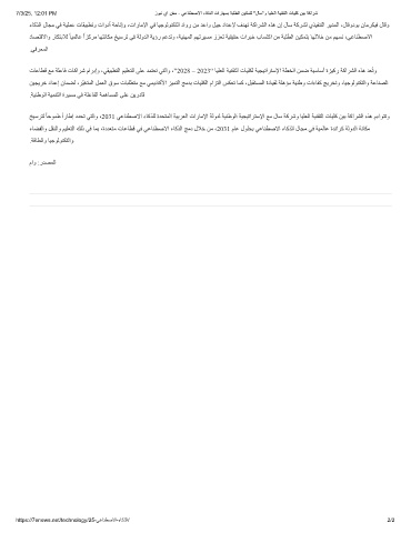 ﺦﯿﺳﺮﺘﻟ ً ﺎﺣﻮﻤط ًارﺎطإ دﺪﺤﺗ ﻲﺘﻟاو ،2031 ﻲﻋﺎﻨﻄﺻﻻا ءﺎﻛﺬﻠﻟ ةﺪﺤﺘﻤﻟا ﺔﯿﺑﺮﻌﻟا تارﺎﻣﻹا ﺔﻟوﺪﻟ ﺔﯿﻨطﻮﻟا ﺔﯿﺠﯿﺗاﺮﺘﺳﻹا ﻊﻣ لﺎﺳ ﺔﻛﺮﺷو ﺎﯿﻠﻌﻟا ﺔﯿﻨﻘﺘﻟا تﺎﯿﻠﻛ ﻦﯿﺑ ﺔﻛاﺮﺸﻟا هﺬھ مءاﻮﺘﺗو