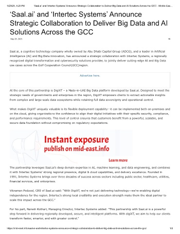 5/29/25, 4:29 PM  ‘Saal.ai’ and ‘Intertec Systems’ Announce Strategic Collaboration to Deliver Big Data and AI Solutions Across the GCC - Middle Eas…