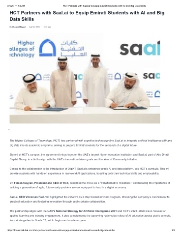 https://focus.hidubai.com/hct-partners-with-saal-ai-to-equip-emirati-students-with-ai-and-big-data-skills/ 1/2