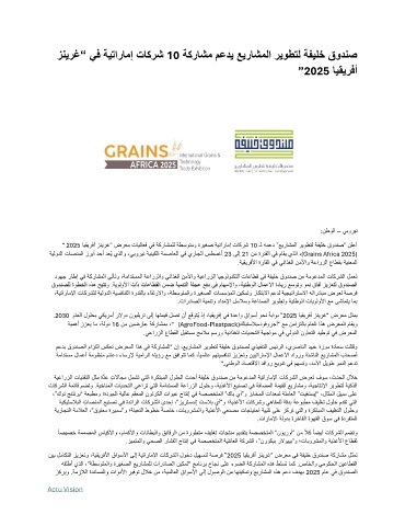 ” 2025 ايقيرفأ زنيرغ“ ضرعم تايلاعف يف ةكراشملل ةطسوتمو ةريغص ةيتارامإ تاكرش 10 ـل همعد ”عيراشملا ريوطتل ةفيلخ قودنص“ نلعأ