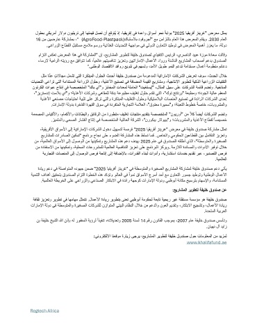 ،ةيقيرفلأا قاوسلأا ىلإ ةيتاراملإا تاكرشلا لوخد ليهستل ةصرف " 2025 ايقيرفأ زنيرغ" ضرعم يف ةفيلخ قودنص ةكراشم لثمت
