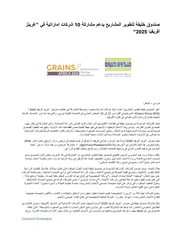 ” 2025 ايقيرفأ زنيرغ“ ضرعم تايلاعف يف ةكراشملل ةطسوتمو ةريغص ةيتارامإ تاكرش 10 ـل همعد ”عيراشملا ريوطتل ةفيلخ قودنص“ نلعأ