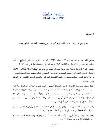 ةيوه نع عيراشلما ريوطتل ةفيلخ قودنص فشك   :     2025   سط  سغأ  –    28       ةدحتلما ةيبرعلا تاراملإا ،يبظوبأ