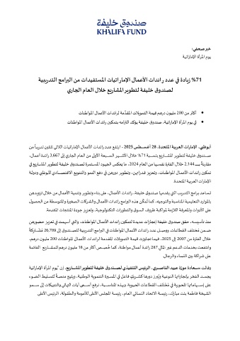 نم ابيردت نيقلت يتلالا تايتاراملإا لامعلأا تادئار ددع عفترا      - 2025     ططططططططططسغأ      28    ،ةدحتلما    ةيبرعلا تاراملإا ،يبظوبأ